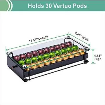 ZCDCP Nespresso Vertuo Pod Holder Coffee Capsule Holder Drawer Black 30 Pods