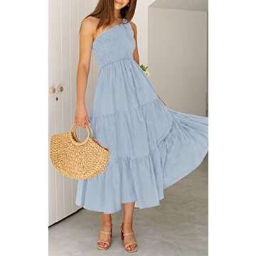 ZCSIA Women's 2024 Summer Boho One Shoulder Sleeveless Solid Color Ruffle Beach Party Tiered Midi Dress