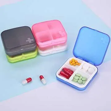 ZDQZC Portable Pill Organizer - Slim Pill Box for Purse or Travel, Compact Pill Case(4 Compartment,Pink)
