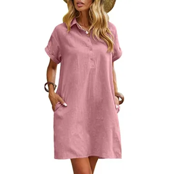 Show moreIntroducing the Zeagoo Shirt Dress for Women, a perfect blend of style and comfort designed for your summer adventures! Crafted from a lightweight, breathable cotton fabric, this charming dress promises to keep you looking fresh and fabulous no matter where your day takes you. With its chic short sleeves and classic v-neck collar, this tunic shirt dress exemplifies versatility and is ideal for casual outings, brunch dates, or even a day at the beach. The addition of side hidden pockets offers a sophisticated yet practical touch, enhancing its overall design while providing ample storage for your essentials.