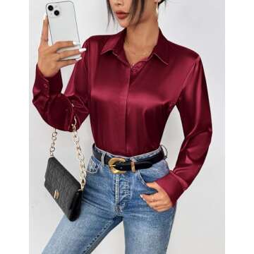 Zeagoo Silk Button Down Shirts for Women Long Sleve Satin Blouse Soft Business Work Dress Shirt Red