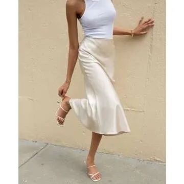 Zeagoo Silk Skirts for Women Midi High Waisted Skirt Elegant Satin Skirts Fall