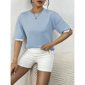 Zeagoo Summer Tops for Women's Trendy Crewneck Blouse - Casual Loose Fit Shirts