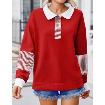 Show moreStep into a world where style meets comfort with the ZEAGOO Women's Casual Striped Sweatshirt, an exquisite addition to your fall and winter wardrobe. Crafted from 100% Polyester, this top features a medium thickness that promises warmth while ensuring breathability, making it a versatile choice for various occasions. With a vintage ribbed neckline and an elegant button down henley v-neck, this sweatshirt exudes sophistication and complements your casual ensembles effortlessly.