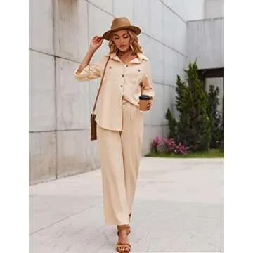 Show more Discover the ultimate in summer comfort with the Zeagoo Women 2 Piece Linen Sets! Designed specifically for the modern woman, this outfit features a luxurious blend of linen and cotton that ensures you stay cool and stylish all season long. The lightweight, breathable fabric not only offers exceptional sun protection but also expertly wicks moisture away from the body, guaranteeing a comfortable wearing experience during those hot summer days. With its classic appeal and impeccable craftsmanship, this set is the perfect addition to your summer wardrobe.
