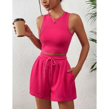 Show more Experience the ultimate in comfort and style with the Zeagoo Women's 2 Piece Sleeveless Rib Knit Pajama Sets. This versatile lounge outfit features a beautifully designed sleeveless top paired with cozy shorts, perfect for unwinding at home or enjoying leisurely weekends. Crafted from soft, breathable rib knit fabric, this tracksuit promises to keep you comfortable throughout the day. The addition of functional side pockets enhances the practicality of this stylish pajama set, allowing you to keep small essentials close at hand while you relax. Whether you're lounging on the couch, enjoying a good book, or catching up on your favorite shows, this matching set is sure to provide both comfort and chic styling.