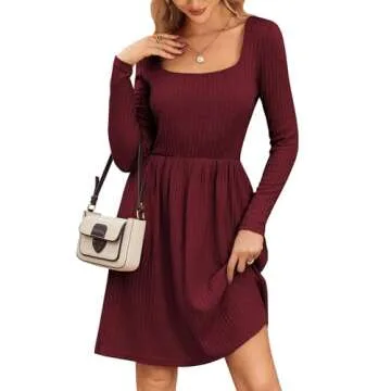 Show moreStep into the new season with the Zeagoo Women's 2024 Fall Dress, a stunning blend of style and comfort. Designed with a flattering square neckline and long sleeves, this casual knit sweater dress is perfect for an array of occasions—from cozy family gatherings to elegant weddings. Made from skin-friendly knit fabric, the dress boasts a soft texture that feels heavenly against your skin, allowing for all-day comfort. The stretchy material ensures a perfect fit, hugging your curves in all the right places while providing the freedom to move. With a chic knee-length cut and an elastic waist that enhances your figure, this dress exudes effortless style. Available in a beautiful wine red hue, it is an eye-catching choice that will make you stand out wherever you go.