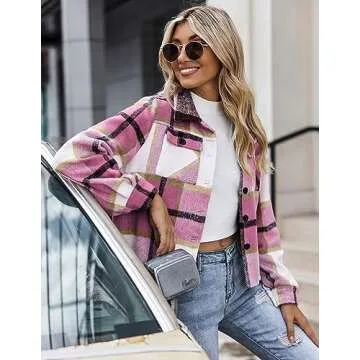 Show moreDiscover the perfect blend of style and comfort with the Zeagoo Women's Cropped Flannel Fashion Plaid Shacket. This chic jacket is expertly crafted from high-quality flannel that offers a plush texture and exceptional warmth, making it your go-to choice for transitional seasons. Whether you're layering it over a simple tee or dressing it up for a night out, this jacket adds a touch of timeless elegance to any outfit. With its trendy cropped cut and vintage plaid design, it promises to keep you cozy and stylish all day long.