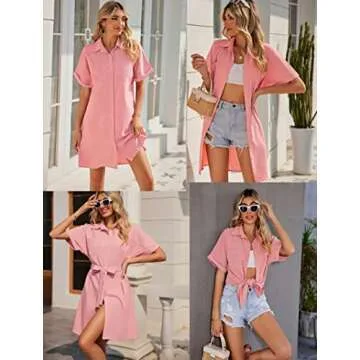 Show moreIntroducing the Zeagoo Women's Dress Short Sleeve Dress Tunic Blouse with Pockets in a vibrant red hue, crafted for style and versatility. This stunning piece epitomizes casual chic with its short sleeves and trendy V-neck design, tailored to keep you looking fashionable on various occasions. The above-knee length is perfect for those warm days, while the belt detail allows for a customizable fit that flatters your figure. The shirt features a classic lapel collar and a button-down closure, ensuring that you look polished yet effortlessly put together. Thoughtfully designed with two left chest pockets, it merges practicality with elegance, making it a must-have staple in your wardrobe.