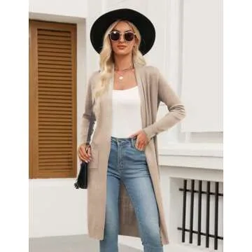 Zeagoo Women's Long Cardigans Sweater 2024 Fall Lightweight Open Front Casual Knit Duster Coat with Pockets