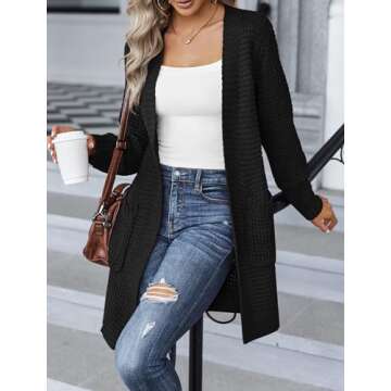 Show moreIntroducing the **Zeagoo Women's Oversized Long Batwing Sleeve Cardigan Waffle Knit Sweater Coat** in classic black—the epitome of cozy elegance! This stunning cardigan is crafted from 100% acrylic knit fabric, ensuring a soft and elastic feel that’s perfect for any season. Its lightweight texture makes it an ideal layering piece, while the oversized, chunky design exudes a relaxed yet fashionable vibe. Whether you're lounging at home or out on the town, this cardigan will keep you warm and stylish.