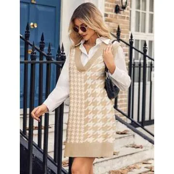 Zeagoo Women's Oversized Sweater Vest Dress V Neck Knit Pullover Sweater Vest Sleeveless Sweater Loose Casual Vest Dress