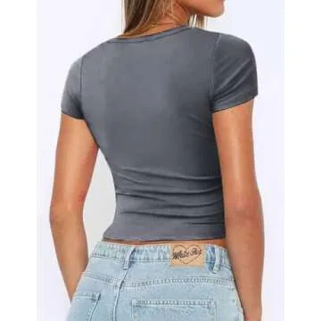 Zeagoo Women's T-Shirts Cropped Tops Going Out Slim Fit Short Sleeve Square Neck Casual Basic Y2k Tight Shirt Dark Grey