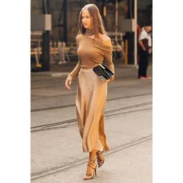 Zeagoo Womens Midi Skirt Satin High Waist Skirt Elegant Silk Skirts Khaki