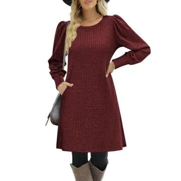 Show moreIntroducing the Zeagoo Women’s Long Sleeve Knitted Sweater Dress, a statement piece for your autumn wardrobe. Crafted with care from a blend of 98% premium polyester and 2% spandex, this dress not only ensures comfort but also provides an elegant fit. The long puff sleeves and crew neck design beautifully blend coziness with style, allowing you to remain chic and comfortable throughout the day. With a trendy A-line silhouette that falls above the knee, this versatile tunic dress is perfect for layering or wearing alone, making it a must-have for those shifting seasons.