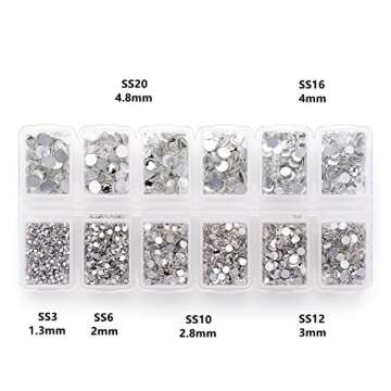 Show moreExperience creativity at your fingertips with the Zealer 1800pcs Clear Crystal Nail Art Rhinestones. This exquisite collection of top-grade flatback glass gems is perfect for nail decoration, crafts, eye makeup, and enhancing the aesthetics of clothes and shoes. With approximately 1800 pieces in varying sizes (from 1.3mm to 4.8mm), you'll have an abundance of options to create stunning looks. The crystal clear quality ensures a dazzling sparkle, elevating any project you take on. The included compact case keeps everything organized, making it effortlessly portable for on-the-go creativity. Whether you're a professional or a crafting enthusiast, these rhinestones are a must-have in your toolkit!