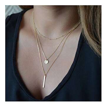 Zealmer Daycindy Multi-Layer Long Bar Necklace for Women, Golden
