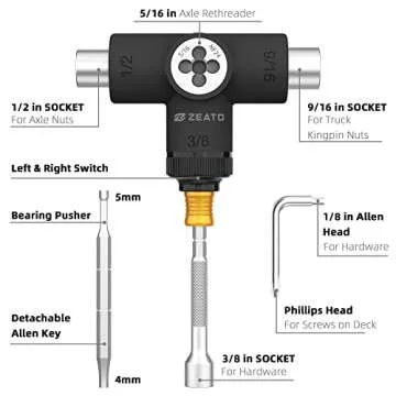Zeato All-in-One Skate Tool: Multi-Function Portable Accessory for Skateboarders