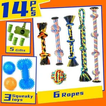 Zeaxuie Luxury Tough Dogs Toys for 5-50lbs Dogs -14 Pack Valued Dog Toys for Small,Medium Breed & Large Breed with Interactive Rope Toys,Squeaky Chew Toys for Teething