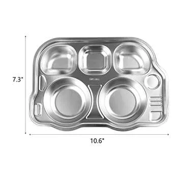 Show moreTransform mealtime into an exciting adventure for your little ones with the ZEAYEA 3 Pack Stainless Steel Divided Plate. Made from high-quality 304 stainless steel, this platter is both nontoxic and BPA free, ensuring safe dining for your children. Its sturdy construction means no more worrying about breakage, making it an ideal choice for toddlers and preschoolers. The bus-shaped design not only captivates kids' imaginations but also encourages them to explore a variety of foods, turning mealtime into a fun experience. Each plate features 5 spacious compartments that allow for perfect portion control, helping kids to enjoy a balanced meal by separating different food types.