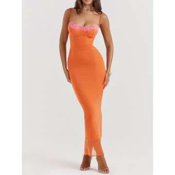 Zebaexf Womens Birthday Slip Long Dresses Sexy Prom Sleeveless Bodycon Party Maxi Dress Orange S