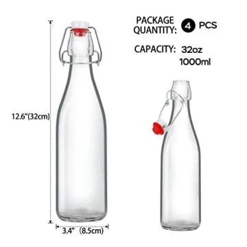 ZEBEIYU 32oz Beer Bottle,Swing Top Glass Kombucha Bottles with Stoppers for Brewing, Beverages, Smoothies, Kefir, Beer, Soda, Juicing, Kombucha, Oil, Water, Milk, Vinegar(4 Pack)