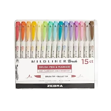 Unleash your creativity with the Zebra Pen Mildliner Brush Marker, a must-have for any artist or planner. This remarkable set features a double-ended design, equipped with both a brush tip and a fine tip, making it the ultimate tool for dynamic creations and meticulous detailing. The assorted soft, pastel colors in the 15-count pack allow for a spectrum of creative expression, perfectly suited for everything from art projects to daily planning. Each marker is designed for...