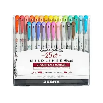 Zebra Pen Mildliner Double Ended Brush Pen, Brush and Point Tips, Assorted Ink Colors, 25-Pack, Multicolor (79125)