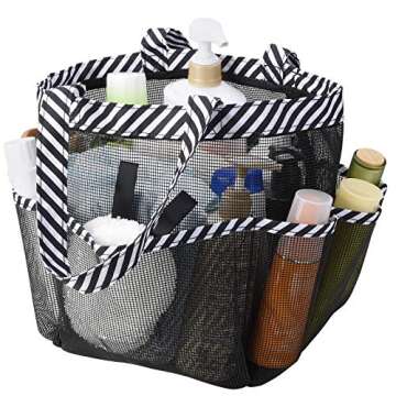 Zecval Mesh Shower Caddy Tote, Portable Shower Bag College Dorm Bathroom Caddy Organizer with 8 Storage Pockets Toiletry Bathroom Organizer, for College Dorm Room Essentials