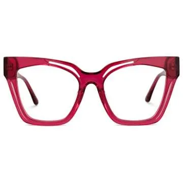 Show moreIntroducing the Zeelool Vintage Cat Eye Blue Light Blocking Glasses — a perfect blend of style, comfort, and environmental responsibility. Crafted to cater to the modern woman who values both aesthetics and sustainability, these glasses are made from biodegradable materials derived from natural cellulose extracted from cotton. Not only do they exhibit a chic vintage cat-eye design in a striking red hue, but they also come equipped with clear lens and blue light blocking technology, ensuring your eye health remains a priority even in the digital age.