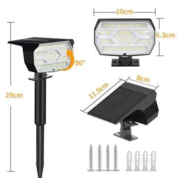 Show moreIlluminate your outdoor spaces with the revolutionary ZEEQII Solar Spot Lights Outdoor, featuring a powerful array of 46 LEDs designed to bring vibrant light to your garden, yard, driveway, and pathways. With a 90° adjustable solar panel, these lights are engineered to maximize sunlight absorption, ensuring your outdoor areas are bright all night long. Experience the perfect blend of functionality and design that not only enhances security but also beautifies your outdoor living spaces.