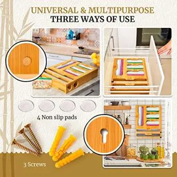 ZEMAKS Bamboo Ziplock Bag with Foil and Plastic Wrap Organizer with Cutter, Compatible with all Zip Lock Bag Sizes, any 12 Inches Roll and 14 Inches Wide Drawer
