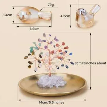 ZenBless 7 Chakra Crystal Tree Crystals Bird Statues Set, Money Tree Chakra Decor Tray and Gold Small Birds Figurines Yoga Meditation Zen Spiritual Room Home Shelf Decor Feng Shui Wealth and Luck