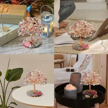 ZenBless 7 Chakra Healing Crystals Stones Tree, Green Fluorite Leaf Wire Wrapped on Natural Agate Slice Base, Home Office Desk Living Room Feng Shui Decoration for Wealth and Luck