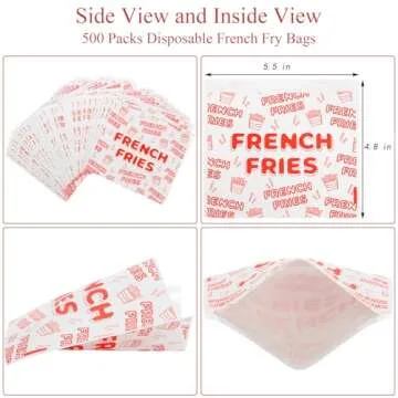 Each bag measures 5.5 inches long and 4.8 inches wide, making them the ideal size for all sorts of delightful treats—from french fries and hash browns to cookies and other small snacks. Their cute design showcasing a charming red and white theme with 'French FRIES' emblazoned makes them not only functional but fun too!