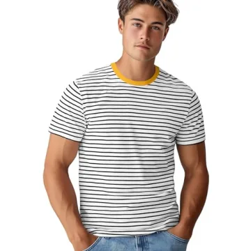 Discover the perfect blend of style and comfort with the Zengjo Mens Striped T Shirt, thoughtfully crafted from premium cotton spandex yarn dye fabric. Unlike other cheaply printed options, this shirt promises durability without compromising on aesthetics. The fabric is anti-pilling, ensuring it looks as good after many washes as it did on day one. With a chic design inspired by traditional breton shirts, the Zengjo tee features a stylish contrast rib collar that adds a unique twist while...