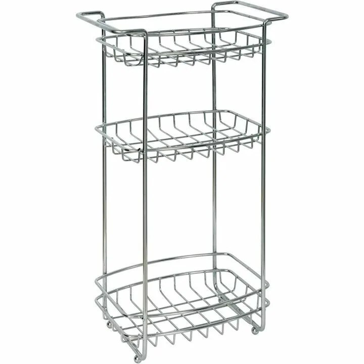 Show moreIntroducing the versatile, stylish, and highly functional bath stand that is perfect for any bathroom! This bath stand, made from a reputable and high-quality brand, is designed to provide you with the ultimate storage solution. Its durable steel construction and heavy gauge wire construction ensure long-lasting use while effectively allowing water to drain off items when used inside the shower. With three spacious shelves, it's ideal for organizing bath and shower essentials, toilet paper, and more. This bath stand can be placed inside your shower or anywhere in your bathroom, making it a practical choice for spaces of all sizes.