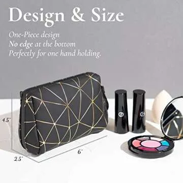 Show moreIntroducing the ZENPUNK Mini Makeup Bag for Purse – an essential accessory that effortlessly combines style and functionality. Crafted from premium PU leather, this makeup organizer is designed to elevate your beauty routine with its luxurious feel and robust durability. Measuring a compact 6” x 4.5” x 2.5” and weighing only 1.7 ounces, it is lightweight and portable, making it the perfect travel companion for on-the-go glam. Its elegant Black & Gold color scheme adds a touch of sophistication to any purse, ensuring you always look chic while keeping your essentials in order.