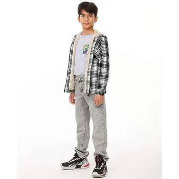 Show moreIntroducing the ZENTHACE Kids Boys Flannel Jacket, a stylish inclusion to your child's wardrobe that effortlessly blends comfort, functionality, and fashion. This exceptional jacket features a sherpa fleece lining throughout, including the hood, ensuring your little adventurer stays warm during those chilly outdoor escapades. Crafted in a trendy black and white buffalo plaid design, this versatile zip-up hoodie makes a strong style statement while keeping your child cozy and comfortable. With sizes ranging for young boys aged 10 to 12, this jacket is designed to become their favorite outdoor companion, allowing more playtime in any weather!
