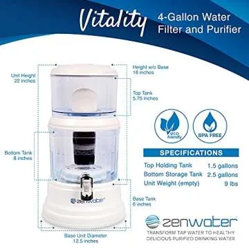 ZENWATER Gravity Water Filter System - Portable Countertop Water Filter System - Alkaline Water Filter System - 4 Gallon
