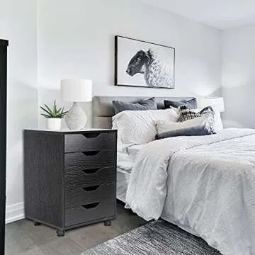 ZENY 5 Drawers Chest, Mobile File Cabinet with Casters, Home Office Storage Cabinet Under Desk Cabinet Storage Drawers Desk (Black)