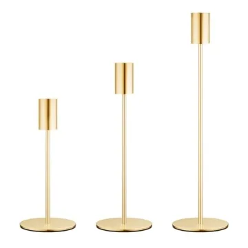 zeochyni French Gold Candlestick Holders Set of 3, Decor Taper Candle Holder for Wedding, Dinning, Party,Fits 3/4 Inch Thick Candle