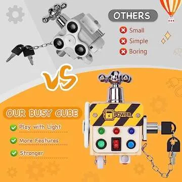 Worried about quality? Rest assured, our product meets the highest safety standards in children's toys. With smooth edges and a sturdy design, the LED Busy Cube is perfectly safe for your little adventurers.