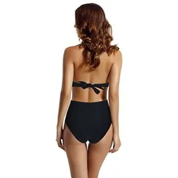 zeraca Women's Surplice Neckline High Waisted Halter One Piece Swimsuit Bathing Suit (Black, M10)