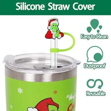 ZERCEJC 6 PCS Christmas Straw Cover Cap for Stanley Cup,Xmas Silicone Straw Toppers Cap Compatible with Stanley 30&40 Oz Tumbler,Reusable Straw Tips Lids for Stanley Cup Accessories