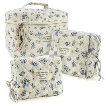 While there are numerous cosmetic bags available, the ZERFLUMP Cute Quilted Floral Makeup Bag Set stands out due to its unique combination of quality, design, and versatility. Unlike many competitors that offer only a single size or style, this set provides three distinctly sized bags that cater to varying storage needs. Furthermore, the use of washable cotton fabric enhances its durability, ensuring it maintains its charm and usability far longer than synthetic alternatives. The adorable patterns also bring a sense of personality that's often lacking in standard offerings, making this set a true expression of individuality.