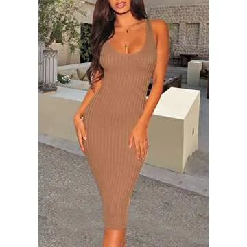 ZERMOM Women's Casual Sexy Bodycon Ribbed Tank Dress Scoop Neck Sleeveless Club Dresses