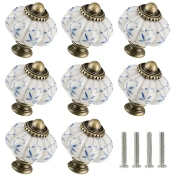 Show more Introducing the **Zernmiarder Ivory & Blue Ceramic Knobs 12 Pack** – the perfect blend of style and functionality for any home. These exquisite pumpkin-shaped drawer knobs come in an elegant ivory and blue color palette that complements various furniture styles, whether vintage or contemporary. Measuring at a comfortable 1-3/8" x 1-1/2", these knobs are designed not just for aesthetics but for practicality as well. Each set includes **12 regular screws** for easy installation, making them an ideal choice for DIY enthusiasts looking to upgrade their furniture effortlessly.