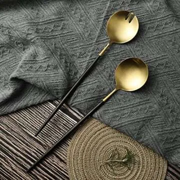 Zerophilo Salad Servers,Spoon and Fork Set 11.41 inch,18/10 Stainless Steel Salad Serving Titanium Plating (black gold)