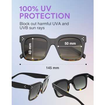 Show moreIntroducing the zeroUV Oversized Fashion Retro Square Sunglasses, a chic and essential accessory for every stylish woman. With a timeless vintage design, these sunglasses not only exude elegance but also prioritize your eye health with 100% UV400 Protection. No need to choose between fashion and safety; you can have both while enjoying crystal clear visibility. The black-tortoise fade combined with lavender lenses adds a unique flair, making these shades the perfect touch for any attire or season.